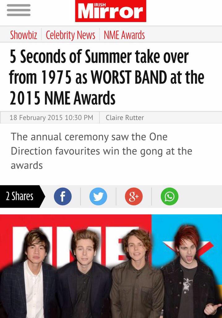 "Haben den NME schlechteste Band Award gewonnen. Ich bin gerade so verdammt glücklich. Danke an alle die gevotet haben #Träumewerdenwahr" - Michael